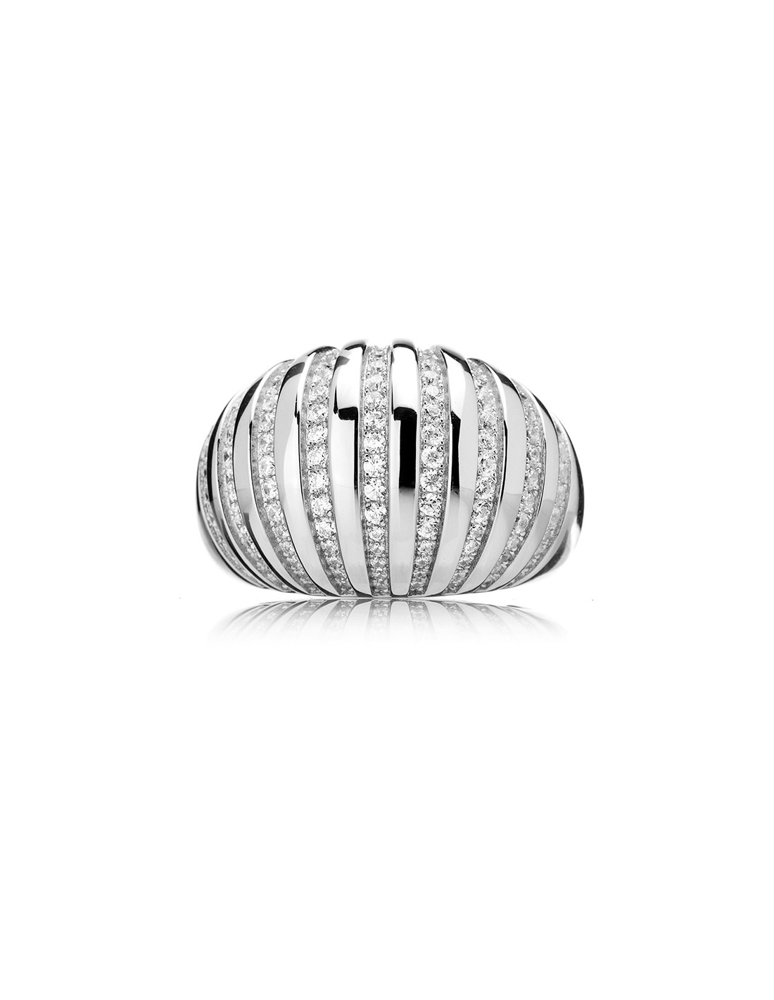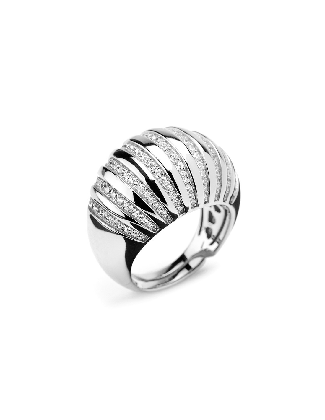 Anello regolabile realizzato in argento 925 ed impreziosito da raggi di zirconi bianchi.