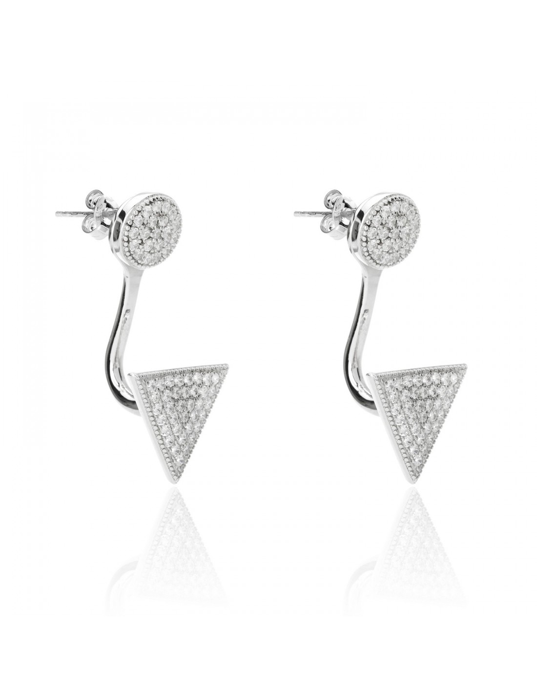 Un triangolo illuminato da zirconi è la punta di questi orecchini in Argento 925. Chiusura a farfalla.